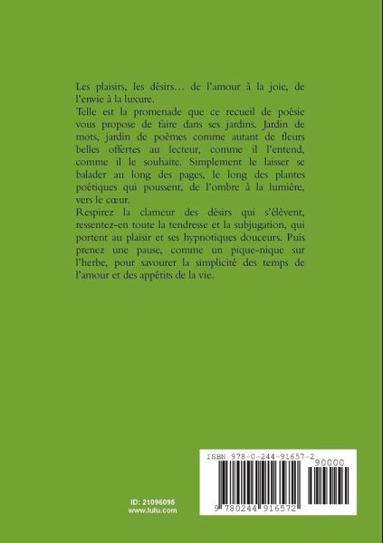 Ce recueil de poésie invite à une promenade charmante, entre désir et plaisir, là où l'amour règne par les corps et les envies. Venez la savourer !