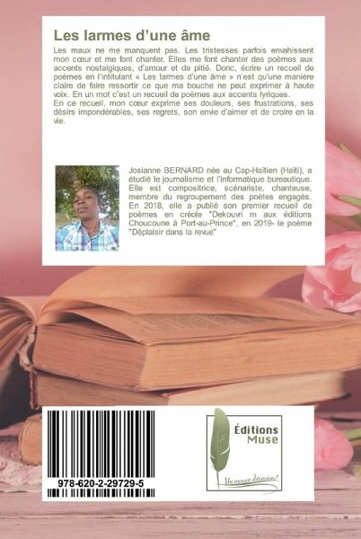 Les maux ne me manquent pas. Les tristesses parfois envahissent mon cur et me font chanter. Elles me font chanter des poèmes aux accents nostalgiques, d'amour et de pitié. Donc, écrire un recueil de poèmes en l'intitulant ' Les larmes d'une âme ' n'est qu'une manière claire de faire ressortir ce que ma bouche ne peut exprimer à haute voix. En un mot c'est un recueil de poèmes aux accents lyriques.En ce recueil, mon cur exprime ses douleurs, ses frustrations, ses désirs impondérables, ses regrets, son envie d'aimer et de croire en la vie.