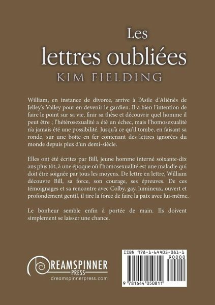William, en instance de divorce, arrive à l'Asile d'Aliénés de Jelley's Valley pour en devenir le gardien. Il a bien l'intention de faire le point sur sa vie, finir sa thèse et découvrir quel homme il peut être ; l'hétérosexualité a été un échec, mais l'homosexualité n'a jamais été une possibilité. Jusqu'à ce qu'il tombe, en faisant sa ronde, sur une boite en fer contenant des lettres ignorées du monde depuis plus d'un demi-siècle. Elles ont été écrites par Bill, jeune homme interné soixante-dix ans plus tôt, à une époque où l'homosexualité est une maladie qui doit être soignée par tous les moyens. De lettre en lettre, William découvre Bill, sa force, son courage, ses épreuves. De ces témoignages et sa rencontre avec Colby, gay, lumineux, ouvert et profondément gentil, il tire la force de faire la paix avec lui-même. Le bonheur semble enfin à portée de main. Ils doivent simplement se laisser une chance.
