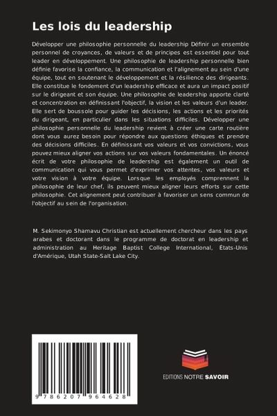 Développer une philosophie personnelle du leadership Définir un ensemble personnel de croyances, de valeurs et de principes est essentiel pour tout leader en développement. Une philosophie de leadership personnelle bien définie favorise la confiance, la communication et l'alignement au sein d'une équipe, tout en soutenant le développement et la résilience des dirigeants. Elle constitue le fondement d'un leadership efficace et aura un impact positif sur le dirigeant et son équipe. Une philosophie de leadership apporte clarté et concentration en définissant l'objectif, la vision et les valeurs d'un leader. Elle sert de boussole pour guider les décisions, les actions et les priorités du dirigeant, en particulier dans les situations difficiles. Développer une philosophie personnelle du leadership revient à créer une carte routière dont vous aurez besoin pour répondre aux questions éthiques et prendre des décisions difficiles. En définissant vos valeurs et vos convictions, vous pouvez mieux aligner vos actions sur vos valeurs fondamentales. Un énoncé écrit de votre philosophie de leadership est également un outil de communication qui vous permet d'exprimer vos attentes, vos valeurs et votre vision à votre équipe. Lorsque les employés comprennent la philosophie de leur chef, ils peuvent mieux aligner leurs efforts sur cette philosophie. Cet alignement peut contribuer à favoriser un sens commun de l'objectif au sein de l'organisation.