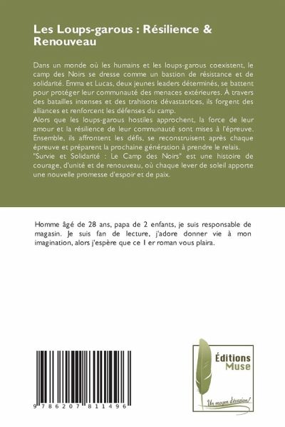 Dans un monde où les humains et les loups-garous coexistent, le camp des Noirs se dresse comme un bastion de résistance et de solidarité. Emma et Lucas, deux jeunes leaders déterminés, se battent pour protéger leur communauté des menaces extérieures. À travers des batailles intenses et des trahisons dévastatrices, ils forgent des alliances et renforcent les défenses du camp.Alors que les loups-garous hostiles approchent, la force de leur amour et la résilience de leur communauté sont mises à l'épreuve. Ensemble, ils affrontent les défis, se reconstruisent après chaque épreuve et préparent la prochaine génération à prendre le relais."Survie et Solidarité : Le Camp des Noirs" est une histoire de courage, d'unité et de renouveau, où chaque lever de soleil apporte une nouvelle promesse d'espoir et de paix.