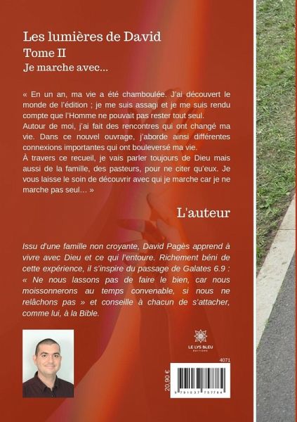 « En un an, ma vie a été chamboulée. J¿ai découvert le monde de l¿édition ; je me suis assagi et je me suis rendu compte que l¿Homme ne pouvait pas rester tout seul. Autour de moi, j¿ai fait des rencontres qui ont changé ma vie. Dans ce nouvel ouvrage, j¿aborde ainsi différentes connexions importantes qui ont bouleversé ma vie. À travers ce recueil, je vais parler toujours de Dieu mais aussi de la famille, des pasteurs, pour ne citer qüeux. Je vous laisse le soin de découvrir avec qui je marche car je ne marche pas seul¿ »