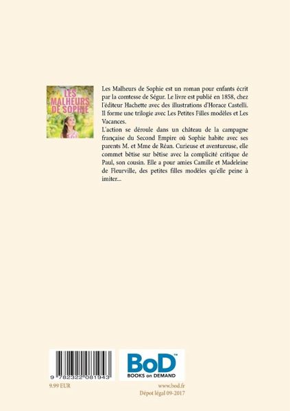 Les Malheurs de Sophie est un roman pour enfants écrit par la comtesse de Ségur. Le livre est publié en 1858, chez l'éditeur Hachette avec des illustrations d'Horace Castelli. Il forme une trilogie avec Les Petites Filles modèles et Les Vacances.L'action se déroule dans un château de la campagne française du Second Empire où Sophie habite avec ses parents M. et Mme de Réan. Curieuse et aventureuse, elle commet bêtise sur bêtise avec la complicité critique de Paul, son cousin. Elle a pour amies Camille et Madeleine de Fleurville, des petites filles modèles qu'elle peine à imiter...