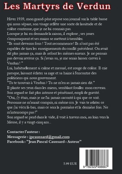 Hiver 1939, mon grand-père repose son journal sur la table basse qui nous sépare, son visage reflète une sorte de lassitude et de colère contenue, que je ne lui connais pas.Lorsque je lui en demande la raison, il explose ; ses joues s'empourprent et ses mains se mettent à trembler.- Ils sont devenus fous ! Tout recommence ! Ils n'ont pas été capables de tirer les enseignements du conflit précédent. On avait dit "plus jamais ça", mais ils refont les mêmes erreurs. Je ne pensais pas devoir revivre ça. Si j'avais su, je me serais laisser crever à Verdun ! Lui, habituellement si calme et mesuré, est rouge de colère. Il crie presque, laissant éclater sa rage et sa haine à l'encontre des politiciens qui nous gouvernent.- Tu te trouvais à Verdun ? Tu ne m'en a jamais rien dit.Il plante ses yeux dans les miens, semblant fouiller mon cerveau. Son regard se fait plus intense et pénétrant, empli de gravité.- Oui, j'y étais, mais je ne l'ai jamais raconté à qui que ce soit. Personne ne m'aurait compris, ni même cru. Je vais te relater ce que j'ai vécu là-bas, mais ce sera la première et la dernière fois. Ne m'interromps pas !Son regard se perd dans le vide, il voit à travers moi, au loin vers la Meuse, il y a vingt-trois ans...La réalité a-t-elle été si terrible qu'on le dit ?Ce récit est basé, notamment, sur des témoignages de poilus, et des courriers (passés à travers le filtre de la censure) ; ceux des hommes qui ont combattu à Verdun, sur la Somme, au Chemin des Dames ou ailleurs...
