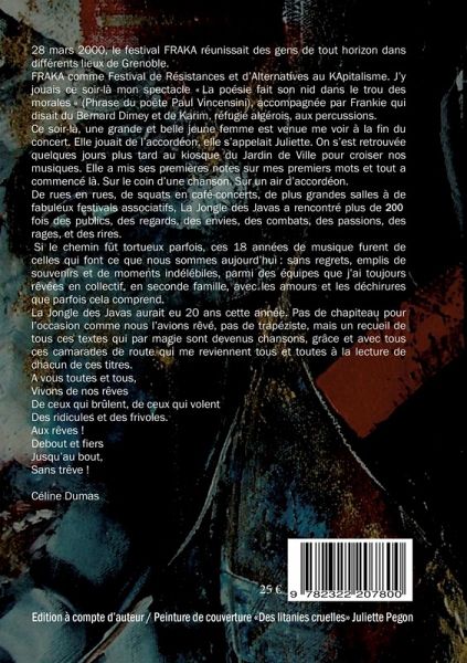 Le groupe grenoblois la JOngle des Javas aurait fêté ses 20 ans cette année. Né d'une rencontre entre Céline Dumas et Juliette Pegon le 28 mars 2000, La JOngle a rencontré différents publics, en rue, en squats, en festivals, en salles de concerts, avec ses textes engagés, enragés, amoureux ou tendres, mais toujours le poing levé. Autour du noyau dur constitué de Juliette et Céline, Yaume Lannoy et Benoit Rey, La JOngle s'est rêvée en collectif, en famille avec les amours et les déchirures que parfois cela comprend.