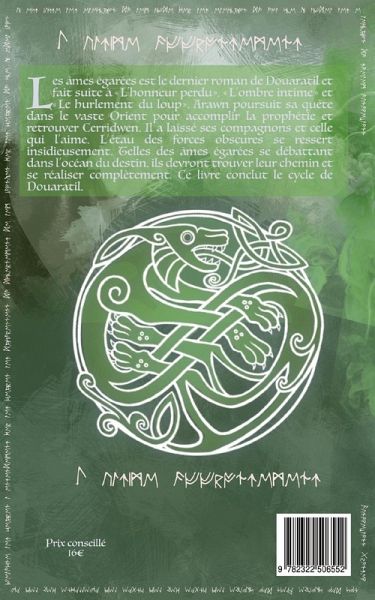 Les âmes égarées est le dernier roman de Douaratil et fait suite à "L'honneur perdu", "L'ombre intime" et "Le hurlement du loup". Arawn poursuit sa quête dans le vaste Orient pour accomplir la prophétie et retrouver Cerridwen. Il a laissé ses compagnons et celle qui l'aime. L'étau des forces obscures se ressert insidieusement. Telles des âmes égarées se débattant dans l'océan du destin, ils devront trouver leur chemin et se réaliser.Ce livre conclut le cycle de Douaratil.