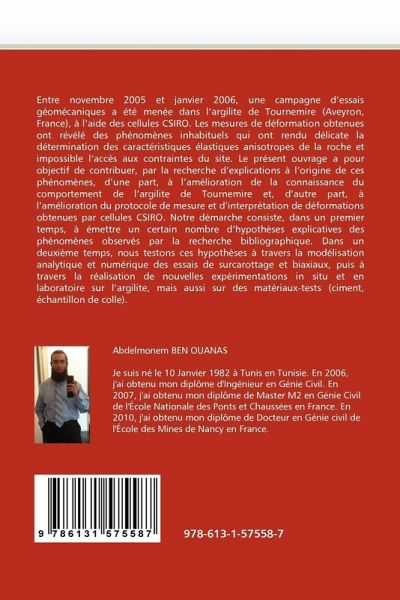 Entre novembre 2005 et janvier 2006, une campagne d'essais géomécaniques a été menée dans l'argilite de Tournemire (Aveyron, France), à l'aide des cellules CSIRO. Les mesures de déformation obtenues ont révélé des phénomènes inhabituels qui ont rendu délicate la détermination des caractéristiques élastiques anisotropes de la roche et impossible l'accès aux contraintes du site. Le présent ouvrage a pour objectif de contribuer, par la recherche d'explications à l'origine de ces phénomènes, d'une part, à l'amélioration de la connaissance du comportement de l'argilite de Tournemire et, d'autre part, à l'amélioration du protocole de mesure et d'interprétation de déformations obtenues par cellules CSIRO. Notre démarche consiste, dans un premier temps, à émettre un certain nombre d'hypothèses explicatives des phénomènes observés par la recherche bibliographique. Dans un deuxième temps, nous testons ces hypothèses à travers la modélisation analytique et numérique des essais de surcarottage et biaxiaux, puis à travers la réalisation de nouvelles expérimentations in situ et en laboratoire sur l'argilite, mais aussi sur des matériaux-tests (ciment, échantillon de colle).