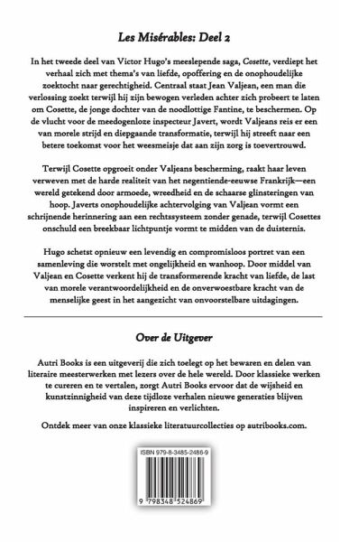 In het tweede deel van Victor Hugo's epische verhaal Les Misérables: Cosette, wordt het verhaal verdiept als de levens van de personages zich verweven in een verhaal over opoffering, veerkracht en de voortdurende zoektocht naar hoop.Jean Valjean is ontsnapt aan de schaduwen van zijn verleden en probeert een nieuw leven op te bouwen terwijl hij zijn verborgen identiteit bewaart. Maar zijn reis is allesbehalve gemakkelijk, met de meedogenloze inspecteur Javert nog steeds vastbesloten om hem op te sporen. Te midden van deze onrust ontmoet Valjean Cosette, de jonge dochter van Fantine, die verwaarloosd en wreed is behandeld door haar voogden. Geleid door medelijden en een gevoel van rechtvaardigheid redt Valjean Cosette uit haar benarde situatie en smeedt een band die hun beider levens voorgoed verandert.Dit deel speelt zich af tegen de achtergrond van het 19e-eeuwse Frankrijk en verkent thema's als verlossing, de onschuld van de kindertijd en de transformerende kracht van liefde. Van de grimmige straten van Parijs tot de verborgen hoeken van het platteland, Hugo's levendige beschrijvingen en scherpe inzichten werpen licht op de strijd en triomfen van de menselijke conditie.Cosette is een ontroerende voortzetting van Hugo's meeslepende verhaal, gevuld met momenten van hartzeer en hoop, terwijl het zich verdiept in de complexiteit van de samenleving en de blijvende kracht van de menselijke geest.