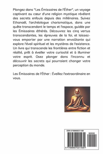 Plongez dans "Les Émissaires de l'Éther", un voyage captivant au coeur d'une religion mystique révélant des secrets enfouis depuis des millénaires. Suivez Ethanaël, l'archéologue charismatique, dans une quête transcendant le temps et l'espace, guidée par les Émissaires éthérés. Découvrez les cinq vertus transcendantes, les épreuves de la foi, et laissez-vous emporter par une narration envoûtante qui explore l'éveil spirituel et les mystères de l'existence. Un livre qui transcende les frontières entre fiction et réalité, prêt à éveiller votre curiosité et à illuminer votre esprit. Osez plonger dans l'inconnu et découvrir les secrets qui pourraient changer votre perception du monde. Les Émissaires de l'Éther: Éveillez l'extraordinaire en vous.