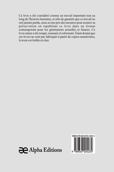 Les mémoires d'un valet de pied" est un livre classique, qui a eu une valeur significative tout au long de l'histoire, et pour garantir que sa sagesse intemporelle ne soit jamais perdue, Alpha Editions l'a soigneusement préservé en le republiant dans un format moderne et accessible aux générations présentes et futures. Soigneusement reformaté, retapé , et nouvellement conçue, cette édition offre un texte clair et lisible, sans copies numérisées de l'uvre originale, Alpha Editions se consacre à insuffler une nouvelle vie aux livres anciens et classiques, rendant ces trésors littéraires à nouveau disponibles pour les lecteurs qui chérissent l'histoire. culture et savoir intemporel.