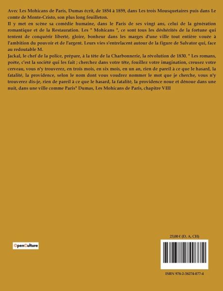 Plongez dans le Paris du XIXe siècle, une ville en pleine effervescence où se croisent les destins de personnages hauts en couleur. ' Les Mohicans de Paris ' d'Alexandre Dumas nous transporte dans une époque où les changements politiques et les intrigues sociales se mêlent à la vie quotidienne des Parisiens. Ce roman, à la fois historique et d'aventure, explore les tensions et les aspirations d'une société en pleine métamorphose. Au cur de cette fresque urbaine, nous suivons les péripéties de plusieurs protagonistes, dont le charismatique et mystérieux Ferragus, chef d'une société secrète, et le jeune et intrépide Étienne Rambert. Leurs chemins se croisent dans un Paris où les rues sont le théâtre de complots et de passions. Dumas, avec son talent narratif inégalé, dresse un portrait vivant de la capitale française, où chaque ruelle cache un secret et chaque personnage a un rôle à jouer dans le grand théâtre de la vie. Les thématiques abordées dans ce roman sont multiples: la quête de pouvoir, l'amour, la trahison, et la lutte pour la justice. À travers ces thèmes, Dumas nous offre une réflexion sur la condition humaine et les forces qui animent les individus. Le lecteur est invité à découvrir un monde où les apparences sont souvent trompeuses et où le courage et la loyauté sont mis à l'épreuve. En nous immergeant dans cette uvre, nous découvrons une époque révolue mais étrangement familière, où les enjeux personnels et collectifs résonnent encore aujourd'hui. ' Les Mohicans de Paris ' nous enseigne à mieux comprendre les évolutions sociales et les motivations humaines, tout en nous offrant un voyage dans une autre dimension à travers le temps et l'espace.
