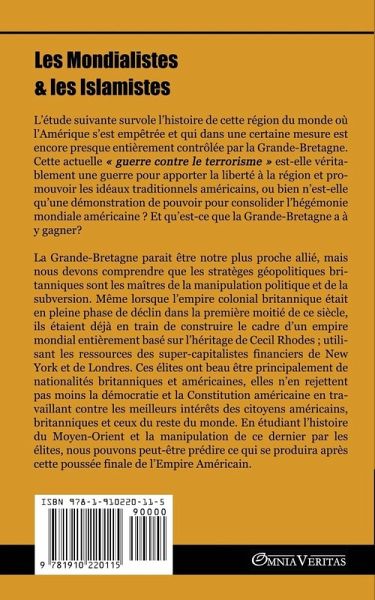 L'étude suivante survole l'histoire de cette région du monde où l'Amérique s'est empêtrée et qui dans une certaine mesure est encore presque entièrement contrôlée par la Grande-Bretagne. Cette actuelle « guerre contre le terrorisme » est-elle véritablement une guerre pour apporter la liberté à la région et promouvoir les idéaux traditionnels américains, ou bien n'est-elle qu'une démonstration de pouvoir pour consolider l'hégémonie mondiale américaine ? Et qu'est-ce que la Grande-Bretagne a à y gagner? La Grande-Bretagne parait être notre plus proche allié, mais nous devons comprendre que les stratèges géopolitiques britanniques sont les maîtres de la manipulation politique et de la subversion. Même lorsque l'empire colonial britannique était en pleine phase de déclin dans la première moitié de ce siècle, ils étaient déjà en train de construire le cadre d'un empire mondial entièrement basé sur l'héritage de Cecil Rhodes ; utilisant les ressources des super-capitalistes financiers de New York et de Londres. Ces élites ont beau être principalement de nationalités britanniques et américaines, elles n'en rejettent pas moins la démocratie et la Constitution américaine en travaillant contre les meilleurs intérêts des citoyens américains, britanniques et ceux du reste du monde. En étudiant l'histoire du Moyen-Orient et la manipulation de ce dernier par les élites, nous pouvons peut-être prédire ce qui se produira après cette poussée finale de l'Empire Américain.