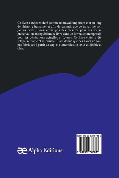 Les morts commandent, a été considérée comme importante tout au long de l'histoire de l'humanité. Dans un effort pour s'assurer que ce travail ne soit jamais perdu, nous avons pris des mesures pour assurer sa préservation en republiant ce livre dans un format moderne pour les générations actuelles et futures. Ce livre complet a été retapé, remanié et reformaté. Comme ces livres ne sont pas des scans des publications originales des auteurs, le texte est lisible et clair.