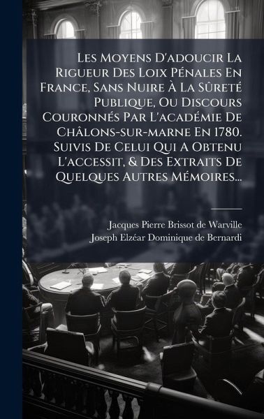 This volume, "Les Moyens D'adoucir La Rigueur Des Loix Pénales En France, Sans Nuire À La SÃ'reté Publique," presents the winning discourses from the Académie de Châlons-sur-Marne's 1780 competition concerning the mitigation of harsh penal laws in France without compromising public safety. Authored by Jacques-Pierre Brissot de Warville and Joseph Elzéar Dominique de Bernardi, the book includes the crowned discourse, the runner-up, and excerpts from other submitted memoirs. A significant contribution to the history of legal thought, this collection offers insights into 18th-century debates on criminal justice, jurisprudence, and the balance between individual rights and societal security. It sheds light on the intellectual currents that influenced legal reform during a pivotal period in French history. This work has been selected by scholars as being culturally important, and is part of the knowledge base of civilization as we know it. This work was reproduced from the original artifact, and remains as true to the original work as possible. Therefore, you will see the original copyright references, library stamps (as most of these works have been housed in our most important libraries around the world), and other notations in the work. This work is in the public domain in the United States of America, and possibly other nations. Within the United States, you may freely copy and distribute this work, as no entity (individual or corporate) has a copyright on the body of the work. As a reproduction of a historical artifact, this work may contain missing or blurred pages, poor pictures, errant marks, etc. Scholars believe, and we concur, that this work is important enough to be preserved, reproduced, and made generally available to the public. We appreciate your support of the preservation process, and thank you for being an important part of keeping this knowledge alive and relevant.