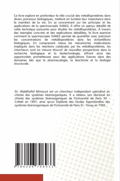 Ce livre explore en profondeur le rôle crucial des métalloprotéines dans divers processus biologiques, mettant en lumière leur importance dans le maintien de la vie. En se concentrant sur les principes et les applications de la spectroscopie XANES, il offre un aperçu détaillé de cette technique puissante pour étudier les métalloprotéines. À travers des exemples concrets et des explications détaillées, le livre examine comment la spectroscopie XANES permet de quantifier avec précision les concentrations de métalloprotéines dans les échantillons biologiques. En comprenant mieux les mécanismes moléculaires impliqués dans les réactions catalysées par les métalloprotéines, les chercheurs sont en mesure d'ouvrir de nouvelles perspectives dans la recherche biologique et la biotechnologie, offrant ainsi des opportunités prometteuses pour des applications futures dans des domaines tels que la pharmacologie, la biochimie et la biologie structurale.