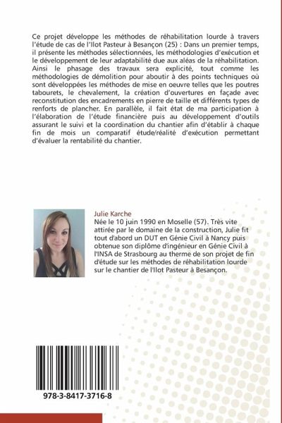 Ce projet développe les méthodes de réhabilitation lourde à travers l'étude de cas de l'Ilot Pasteur à Besançon (25) : Dans un premier temps, il présente les méthodes sélectionnées, les méthodologies d'exécution et le développement de leur adaptabilité due aux aléas de la réhabilitation. Ainsi le phasage des travaux sera explicité, tout comme les méthodologies de démolition pour aboutir à des points techniques où sont développées les méthodes de mise en oeuvre telles que les poutres tabourets, le chevalement, la création d'ouvertures en façade avec reconstitution des encadrements en pierre de taille et différents types de renforts de plancher. En parallèle, il fait état de ma participation à l'élaboration de l'étude financière puis au développement d'outils assurant le suivi et la coordination du chantier afin d'établir à chaque fin de mois un comparatif étude/réalité d'exécution permettant d'évaluer la rentabilité du chantier.
