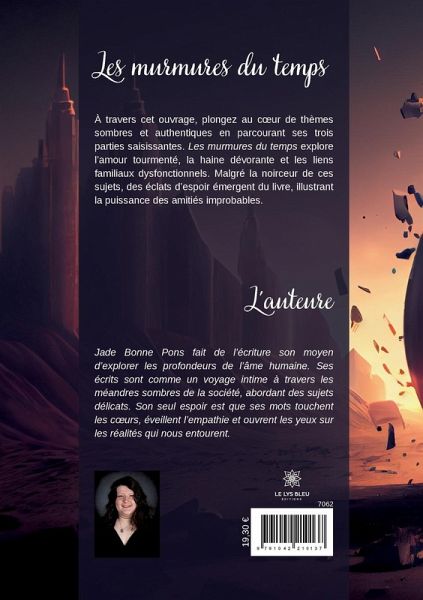 À travers cet ouvrage, plongez au c¿ur de thèmes sombres et authentiques en parcourant ses trois parties saisissantes. Les murmures du temps explore l¿amour tourmenté, la haine dévorante et les liens familiaux dysfonctionnels. Malgré la noirceur de ces sujets, des éclats d¿espoir émergent du livre, illustrant la puissance des amitiés improbables.