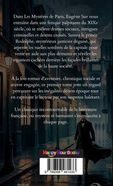 Dans ce premier tome des Mystères de Paris, Eugène Sue dévoile les profondeurs cachées de la capitale du XIXe siècle à travers les aventures du prince Rodolphe, un noble mystérieux déguisé en homme du peuple. Son objectif : secourir les plus démunis, déjouer les complots, et faire éclater la vérité dans une société rongée par l'injustice. À la croisée du roman social, du polar et de l'aventure, cette uvre emblématique explore les contrastes saisissants entre richesse et misère, vertu et corruption, compassion et cruauté. Avec son rythme haletant et ses personnages inoubliables, Les Mystères de Paris reste un classique intemporel, aussi captivant qu'engagé.