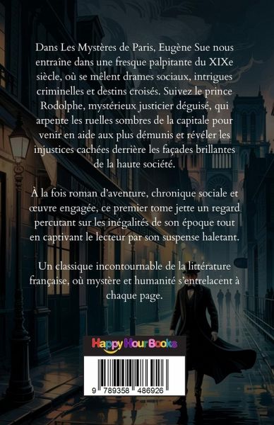Dans ce premier tome des Mystères de Paris, Eugène Sue dévoile les profondeurs cachées de la capitale du XIXe siècle à travers les aventures du prince Rodolphe, un noble mystérieux déguisé en homme du peuple. Son objectif : secourir les plus démunis, déjouer les complots, et faire éclater la vérité dans une société rongée par l'injustice. À la croisée du roman social, du polar et de l'aventure, cette uvre emblématique explore les contrastes saisissants entre richesse et misère, vertu et corruption, compassion et cruauté. Avec son rythme haletant et ses personnages inoubliables, Les Mystères de Paris reste un classique intemporel, aussi captivant qu'engagé.
