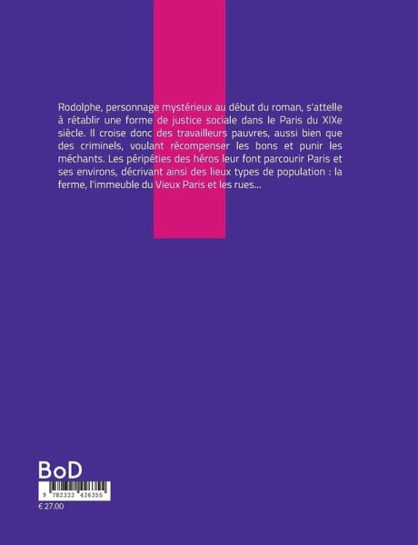 Rodolphe, personnage mystérieux au début du roman, s'attelle à rétablir une forme de justice sociale dans le Paris du XIXe siècle. Il croise donc des travailleurs pauvres, aussi bien que des criminels, voulant récompenser les bons et punir les méchants. Les péripéties des héros leur font parcourir Paris et ses environs, décrivant ainsi des lieux types de population : la ferme, l'immeuble du Vieux Paris et les rues...