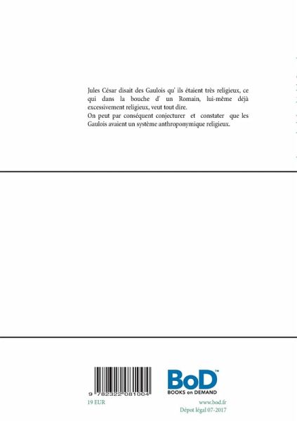 Jules César disait des Gaulois qu' ils étaient très religieux, ce qui dans la bouche d' un Romain, lui-même déjà excessivement religieux, veut tout dire.On peut par conséquent conjecturer et constater que les Gaulois avaient un système anthroponymique religieux.