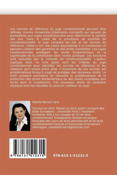 Les normes de référence du juge constitutionnel peuvent être définies comme l'ensemble d'éléments normatifs qui servent de paramètres aux juges constitutionnels pour déterminer la validité des lois. Dans le cadre de la procédure de contrôle de constitutionnalité, le juge compare les lois et les normes de référence. Celles-ci ont une valeur équivalente à la constitution et peuvent contenir des garanties et des droits inviolables. Les juges constitutionnels protègent les droits fondamentaux et la suprématie de la constitution dans l'ordre juridique. Ces fonctions sont assurées par le contrôle de constitutionnalité. L'auteur explique dans ce livre quels sont les critères du juge constitutionnel pour identifier les normes de référence et les relations qu'il existe entre elles. L'inventaire de ces normes est problématique lorsqu'il s'agit de protéger des nouveaux droits. Le droit comparé permettra de résoudre la problématique de la protection des droits fondamentaux ou des droits inviolables non écrits dans la constitution. Ces nouveaux droits de caractère atypique sont les résultats du pouvoir créateur du juge.