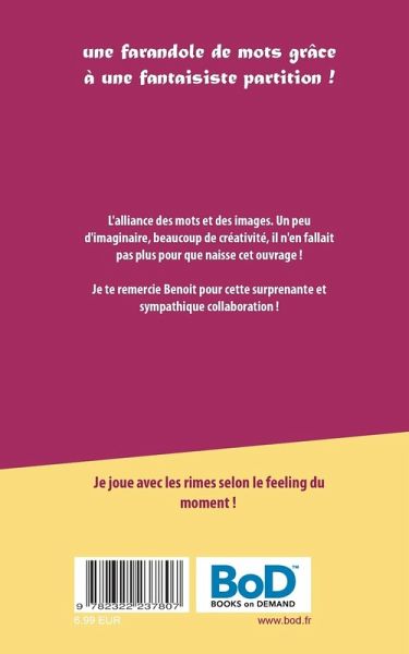 Je vous invite au fil des pages à découvrir nos univers respectifs. Je joue avec les rimes selon le feeling du moment. Un petit grain de folie, beaucoup d'imagination, de fantaisie et l'envie de partager, ont fait naître ce deuxième recueil de poésie ! Souhaitant vous emporter dans la farandole des mots grâce à cette fantaisiste partition ! Lola