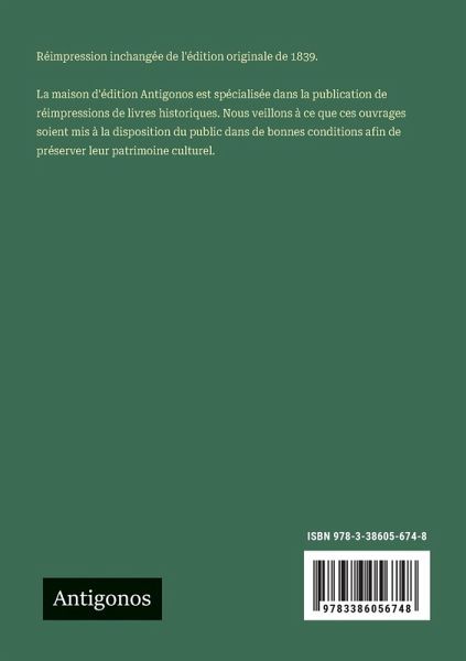 Réimpression inchangée de l'édition originale de 1839. La maison d'édition Antigonos est spécialisée dans la publication de réimpressions de livres historiques. Nous veillons à ce que ces ouvrages soient mis à la disposition du public dans de bonnes conditions afin de préserver leur patrimoine culturel.