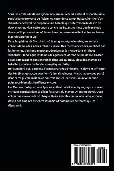 Sous les étoiles du désert syrien, une armée s'étend, vaste et disparate, unie sous la bannière verte de l'Islam. Au coeur de ce camp, Hassan, héritier d'un shamshir ancestral, se prépare à une bataille qui déterminera le destin de deux empires. Mais cette guerre contre les Byzantins n'est que le prélude d'un conflit plus sombre, où les ombres du passé s'éveillent et les anciennes légendes prennent vie. Dans les plaines de Manzikert, où le sang imprègne le sable, les secrets enfouis depuis des siècles refont surface. Des forces anciennes, oubliées par les hommes, s'agitent, menaçant de plonger le monde dans un chaos surnaturel. Tandis que les lames des guerriers vibrent de puissance, Hassan et ses compagnons sont entraînés dans une quête au-delà des champs de bataille, jusqu'aux profondeurs mystiques d'Alep. Héros malgré eux, gardiens d'armes chargées d'histoire, ils devront affronter des ténèbres qu'aucun guerrier n'a jamais vaincues. Mais chaque coup porté dans cette guerre millénaire pourrait sceller leur sort... ou réveiller une puissance bien plus terrifiante encore. Les Ombres d'Alep est une épopée mêlant batailles épiques, mysticisme et intrigues occultes dans le décor fascinant du Moyen-Orient médiéval. Osez entrer dans un monde où chaque étoile scintille comme une lame, et où le destin des empires est entre les mains d'hommes et de forces qui les dépassent.