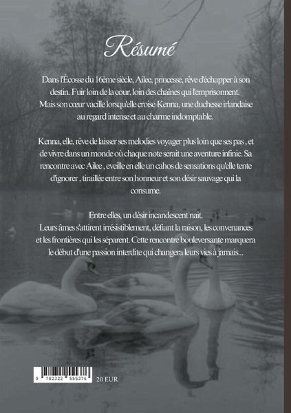 Dans l'Ecosse du 16ème siècle, Ailee, princesse, rêve d'échapper à son destin. Fuir loin de la cour, loin des chaînes qui l'emprisonnent. Mais son coeur vacille lorsqu'elle rencontre Kenna, une duchesse irlandaise au regard intense et au charme indomptable. Kenna, elle, rêve de laisser ses mélodies voyager plus loin que ses pas et de vivre dans un monde où chaque note serait une aventure infinie. Sa rencontre avec Ailee éveille en elle un chaos de sensations qu'elle tente d'ignorer, tiraillée entre son honneur et le désir sauvage qui la consume. Entre elles un désir incandescent nait. Leurs âmes s'attirent irrésistiblement, défiant la raison, les convenances et les frontières qui les séparent. Le début d'une passion interdite qui changera leurs vies à jamais...