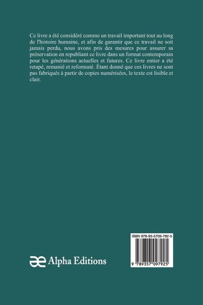 Les épaves de Charles Baudelaire, a été considérée comme importante tout au long de l'histoire de l'humanité. Dans un effort pour s'assurer que ce travail ne soit jamais perdu, nous avons pris des mesures pour assurer sa préservation en republiant ce livre dans un format moderne pour les générations actuelles et futures. Ce livre complet a été retapé, remanié et reformaté. Comme ces livres ne sont pas des scans des publications originales des auteurs, le texte est lisible et clair.