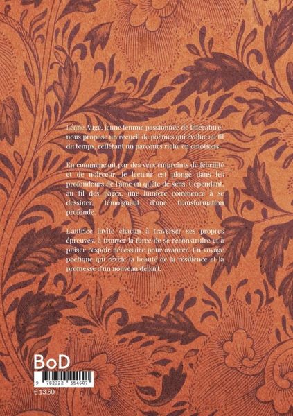 En commençant par des vers empreints de fébrilité et de noirceur, le lecteur est plongé dans les profondeurs de l'âme en quête de sens. Cependant, au fil des pages, une lumière commence à se dessiner, témoignant d'une transformation profonde. L'autrice invite chacun à traverser ses propres épreuves, à trouver la force de se reconstruire et à puiser l'espoir nécessaire pour avancer. Un voyage poétique qui révèle la beauté de la résilience et la promesse d'un nouveau départ.