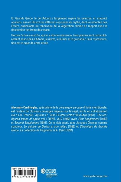 Hormis l'arbre à myrrhe, qui lui a donné naissance, trois plantes sont particulièrement associées à Adonis, le myrte, le laurier et le grenadier. Leur représentation est le sujet de cette étude.