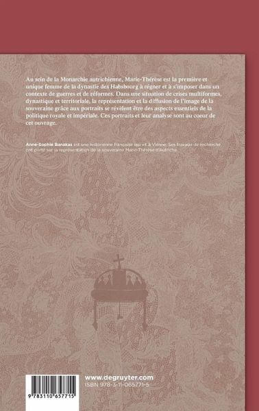 Ce livre rassemble les portraits de Marie-Thérèse pour les analyser sous l'angle de laproduction (avec l'analyse des peintres), sous celui de leur localisation (pays, institutions, emplacement particulier au sein d'une pièce), et des occasions de la commande et/ou de l'envoi des portraits. Enfin, les tableaux y sont étudiés sous l'angle de leur contenu iconographique, contenu qui évolue au cours des quarante années du règne et reflètent ainsi les divers enjeux des périodes comme des publics auxquels les tableaux sont destinés.