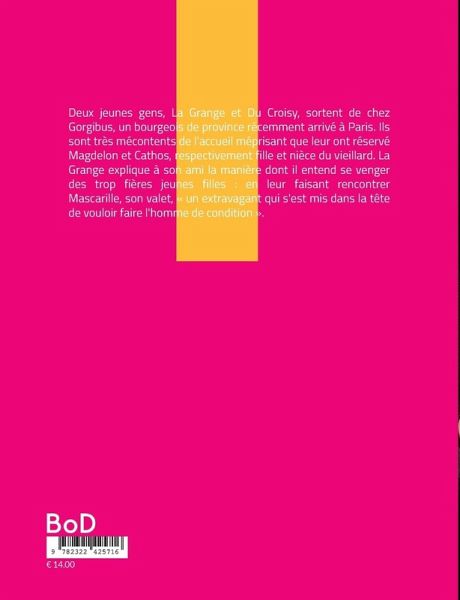 Deux jeunes gens, La Grange et Du Croisy, sortent de chez Gorgibus, un bourgeois de province récemment arrivé à Paris. Ils sont très mécontents de l'accueil méprisant que leur ont réservé Magdelon et Cathos, respectivement fille et nièce du vieillard. La Grange explique à son ami la manière dont il entend se venger des trop fières jeunes filles : en leur faisant rencontrer Mascarille, son valet, « un extravagant qui s'est mis dans la tête de vouloir faire l'homme de condition ».