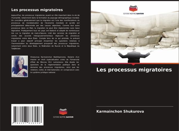 Aujourd'hui, les processus migratoires jouent un rôle important dans la vie de l'humanité, notamment dans la formation du paysage démographique mondial. On considère généralement que la migration est l'une des manifestations du processus de mondialisation de l'économie mondiale et qu'elle est principalement déterminée par des causes objectives. Comme tout autre processus dans un État, la migration ne peut être réglementée sans base législative. Pratiquement tous les pays ont élaboré et adopté de nombreuses lois sur la migration de main-d'oeuvre, créé des services de migration et conclu des accords intergouvernementaux régissant les processus migratoires entre deux États. Compte tenu de ce qui précède, le présent travail a pour objectif principal d'examiner les questions relatives à l'harmonisation du développement prospectif des processus migratoires, notamment entre deux États, la Fédération de Russie et la République du Tadjikistan.