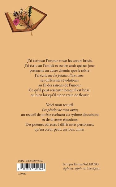 Un recueil de poésie explorant les thématiques de l'amour, de l'amitié, des séparations et des coeurs brisés, illustrées par les quatre saisons, différentes fleurs et floraisons.