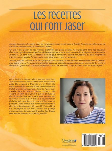 Lorsque la cuisine devient le sujet de conversation, que ce soit avec la famille, les amis ou même avec de nouvelles connaissances, la discussion s'anime. On aime tous parler de nos recettes préférées, soit parce qu'elles nous plongent dans nos souvenirs d'enfance, qu'elles nous rappellent de beaux moments entre amis, ou qu'elles soulignent un évènement important. Ce sont aussi les recettes dont le goût particulier a séduit nos papilles, ou dont l'ingrédient mystère nous a surpris. Ce livre ravive autant les saveurs que les souvenirs. Je vous propose 75 recettes faciles à préparer pour les repas de tous les jours ainsi que des mets et desserts plus élaborés pour les occasions spéciales. Savourez des plats rapides, classiques, réconfortants, festifs et des plaisirs gourmands. Vous trouverez sans doute des recettes coup de coeur qui vous feront jaser!