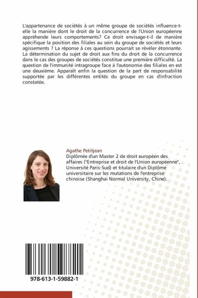 L'appartenance de sociétés à un même groupe de sociétés influence-t-elle la manière dont le droit de la concurrence de l'Union européenne appréhende leurs comportements? Ce droit envisage-t-il de manière spécifique la position des filiales au sein du groupe de sociétés et leurs agissements ? La réponse à ces questions pourrait se révéler étonnante. La détermination du sujet de droit aux fins du droit de la concurrence dans le cas des groupes de sociétés constitue une première difficulté. La question de l'immunité intragroupe face à l'autonomie des filiales en est une deuxième. Apparaît enfin la question de la part de responsabilité supportée par les différentes entités du groupe en cas d'infraction constatée.