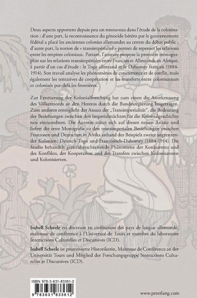 Zur Erneuerung der Kolonialforschung hat zum einen die Anerkennung des Völkermords an den Hereros durch die Bundesregierung beigetragen; zum anderen ermöglicht der Ansatz der «Transimperialität», die Bedeutung der Beziehungen zwischen den Imperialmächten für die Kolonialgeschichte neu einzuordnen. Die Autorin stützt sich auf diesen neuen Ansatz und liefert die erste Monografie zu den transimperialen Beziehungen zwischen Franzosen und Deutschen in Afrika, am Beispiel von zwei angrenzenden Kolonien: Deutsch-Togo und Französisch-Dahomey (1884-1914). Die Studie behandelt grenzüberschreitende Phänomene der Konkurrenz und des Konflikts, der Kooperation und des Transfers zwischen Kolonisatoren und Kolonisierten.