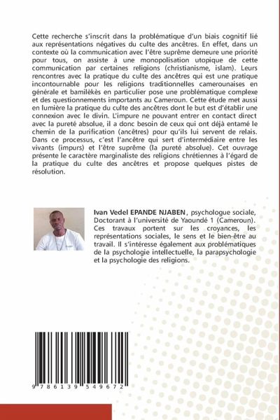 Cette recherche s'inscrit dans la problématique d'un biais cognitif lié aux représentations négatives du culte des ancêtres. En effet, dans un contexte où la communication avec l'être suprême demeure une priorité pour tous, on assiste à une monopolisation utopique de cette communication par certaines religions (christianisme, islam). Leurs rencontres avec la pratique du culte des ancêtres qui est une pratique incontournable pour les religions traditionnelles camerounaises en générale et bamilèkès en particulier pose une problématique complexe et des questionnements importants au Cameroun. Cette étude met aussi en lumière la pratique du culte des ancêtres dont le but est d'établir une connexion avec le divin. L'impure ne pouvant entrer en contact direct avec la pureté absolue, il a donc besoin de ceux qui ont déjà entamé le chemin de la purification (ancêtres) pour qu'ils lui servent de relais. Dans ce processus, c'est l'ancêtre qui sert d'intermédiaire entre les vivants (impurs) et l'être suprême (la pureté absolue). Cet ouvrage présente le caractère marginaliste des religions chrétiennes à l'égard de la pratique du culte des ancêtres et propose quelques pistes de résolution.
