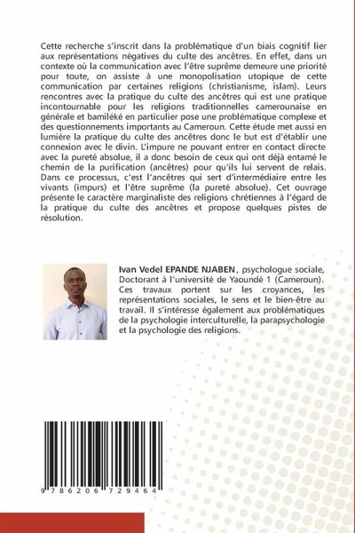 Cette recherche s'inscrit dans la problématique d'un biais cognitif lier aux représentations négatives du culte des ancêtres. En effet, dans un contexte où la communication avec l'être suprême demeure une priorité pour toute, on assiste à une monopolisation utopique de cette communication par certaines religions (christianisme, islam). Leurs rencontres avec la pratique du culte des ancêtres qui est une pratique incontournable pour les religions traditionnelles camerounaise en générale et bamiléké en particulier pose une problématique complexe et des questionnements importants au Cameroun. Cette étude met aussi en lumière la pratique du culte des ancêtres donc le but est d'établir une connexion avec le divin. L'impure ne pouvant entrer en contact directe avec la pureté absolue, il a donc besoin de ceux qui ont déjà entamé le chemin de la purification (ancêtres) pour qu'ils lui servent de relais. Dans ce processus, c'est l'ancêtres qui sert d'intermédiaire entre les vivants (impurs) et l'être suprême (la pureté absolue). Cet ouvrage présente le caractère marginaliste des religions chrétiennes à l'égard de la pratique du culte des ancêtres et propose quelques pistes de résolution.