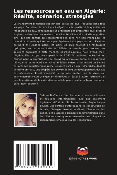 Le changement climatique est l'un des sujets les plus fréquents dans tous les pays. En raison de son impact négatif sur la qualité et la quantité des ressources en eau, cette menace va provoquer des problèmes plus difficiles à gérer, notamment en matière de sécurité alimentaire et d'immigration, ainsi que des conflits qui représentent des défis non seulement pour les pays du sud, mais qui se propagent également aux pays du nord. L'Afrique du Nord est classée parmi les pays les plus pauvres en ressources hydriques, ce qui nous incite à réfléchir ensemble pour trouver des solutions optimales à cette menace, et c'est pourquoi nous avons choisi l'Algérie. Elle occupe une superficie de 2.381.741 millions de km² et est connue pour la diversité de son climat où la majeure partie est désertique (87%), et la partie nord a un climat méditerranéen, la partie sud du Sahara est presque complètement sèche, et parce qu'il y a une vulnérabilité dans le domaine de l'eau, une coopération suivant la voie du développement durable est nécessaire. Il est impératif de ne pas oublier que la dimension environnementale du changement climatique a réussi à attirer l'attention, et que le problème de la civilisation mondiale peut considérer l'eau comme un générateur de paix !