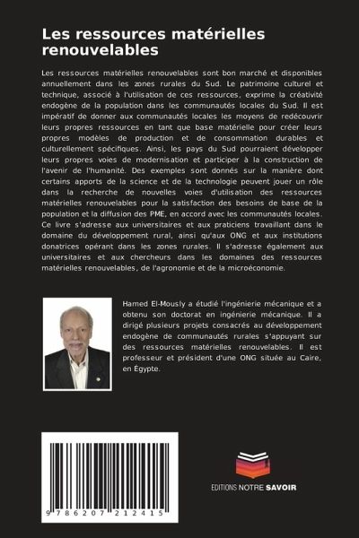 Les ressources matérielles renouvelables sont bon marché et disponibles annuellement dans les zones rurales du Sud. Le patrimoine culturel et technique, associé à l'utilisation de ces ressources, exprime la créativité endogène de la population dans les communautés locales du Sud. Il est impératif de donner aux communautés locales les moyens de redécouvrir leurs propres ressources en tant que base matérielle pour créer leurs propres modèles de production et de consommation durables et culturellement spécifiques. Ainsi, les pays du Sud pourraient développer leurs propres voies de modernisation et participer à la construction de l'avenir de l'humanité. Des exemples sont donnés sur la manière dont certains apports de la science et de la technologie peuvent jouer un rôle dans la recherche de nouvelles voies d'utilisation des ressources matérielles renouvelables pour la satisfaction des besoins de base de la population et la diffusion des PME, en accord avec les communautés locales. Ce livre s'adresse aux universitaires et aux praticiens travaillant dans le domaine du développement rural, ainsi qu'aux ONG et aux institutions donatrices opérant dans les zones rurales. Il s'adresse également aux universitaires et aux chercheurs dans les domaines des ressources matérielles renouvelables, de l'agronomie et de la microéconomie.