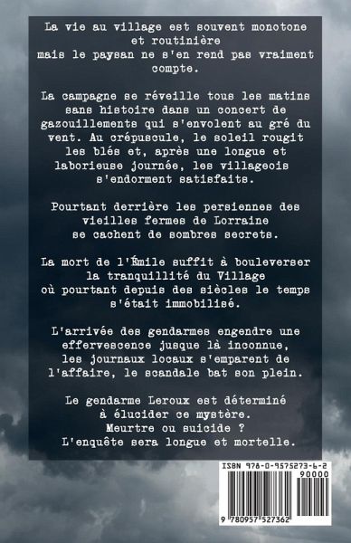 Derrière les persiennes des vieilles fermes de Lorrainese cachent de sombres secrets. La mort de l'Émile suffit à bouleverser la tranquillité du Villageoù pourtant depuis des siècles le temps s'était immobilisé. L'arrivée des gendarmes engendre une effervescence jusque là inconnue,les journaux locaux s'emparent de l'affaire, le scandale bat son plein. Le gendarme Leroux est déterminé à élucider ce mystère. Meurtre ou suicide ? L'enquête sera longue et mortelle.
