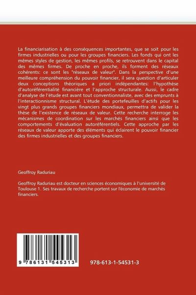 La financiarisation à des conséquences importantes, que se soit pour les firmes industrielles ou pour les groupes financiers. Les fonds qui ont les mêmes styles de gestion, les mêmes profils, se retrouvent dans le capital des mêmes firmes. De proche en proche, ils forment des réseaux cohérents: ce sont les "réseaux de valeur". Dans la perspective d'une meilleure compréhension du pouvoir financier, il sera question d'articuler deux conceptions théoriques a priori indépendantes: l'hypothèse d'autoréférentialité financière et l'approche structurale. Aussi, le cadre d'analyse de l'étude est avant tout conventionnaliste, avec des emprunts à l'interactionnisme structural. L'étude des portefeuilles d'actifs pour les vingt plus grands groupes financiers mondiaux, permettra de valider la thèse de l'existence de réseaux de valeur. Cette recherche interroge les mécanismes de coordination sur les marchés financiers ainsi que les comportements d'évaluation autoréférentiels. Cette approche par les réseaux de valeur apporte des éléments qui éclairent le pouvoir financier des firmes industrielles et des groupes financiers.