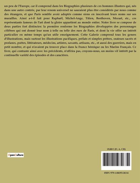Texte corrigé : "Les Rues de Paris" de Bathild Bouniol est une exploration littéraire et historique des rues de la capitale française, mettant en lumière les figures illustres qui ont donné leur nom à ces lieux. L'ouvrage se divise en deux parties distinctes. La première partie est consacrée aux biographies détaillées de personnages célèbres, tels que le cardinal d'Amboise, Jacques Amyot, et d'autres figures historiques qui ont marqué l'histoire de France par leurs contributions dans divers domaines, allant de la politique à la littérature. Ces biographies ne se contentent pas de relater des…mehr