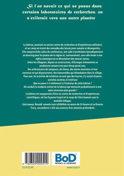 La bâtisse, jouxtant un ancien centre de recherches et d'expériences militaires et un camp de nomades, ou vivent en permanence des campeurs, des laissés pour compte et désargentés.Elle comprend des salles de conférences sur des thèmes divers, une salle transformée épisodiquement en dancing pour les jeunes de la région et, curieusement, une salle louée à une église satanique où se déroulaient des messes noires.Aux dires des villageois, depuis sa construction, d'étranges événements se produisent, semant ainsi une peur bleue parmi les villageois.Des enlèvements de campeurs, des chiens capturés, des mères enceintes et leur nouveau-né qui disparaissent, des humanoïdes qui déambulent dans le village pour ne citer que l'essentiel.Pour eux, les activités de la bâtisse ne sont que des leurres, il y aurait d'autres activités secrètes à l'intérieur, mais quoi ?Que se passe-t-il réellement à l'intérieur de cette bâtisse ?Où conduit la modeste entrée de la bâtisse qui mènerait probablement à une autre structure plus grande ?Les enquêtes en cours parviendront-elles à élucider le mystère de la bâtisse soupçonnée d'être un centre de recherches et d'expériences scientifiques, où l'on façonne l'esprit et le corps de l'être humain sans la moindre éthique ?Malgré la psychose, la vie des villageois continue, des amours se nouent et se séparent, des rivalités, des entre-aides aussi.Parmi eux, Ronald le malade bipolaire qui avait commis trois infidélités en moins de vingt-quatre heures et sa fiancée Tracy succombera-t-elle aux avances d'un nouveau prétendant.