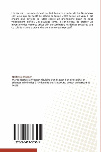 Les sectes..., un mouvement qui fait beaucoup parler de lui. Nombreux sont ceux qui ont tenté de définir ce terme, cette dérive, en vain. Il est encore plus difficile de lutter contre un phénomène qu'on ne peut valablement définir. Cet ouvrage tente, à son niveau, de dresser un inventaire des mesures prises afin de combattre les dérives sectaires que ce soit de manière préventive ou à un niveau répressif.