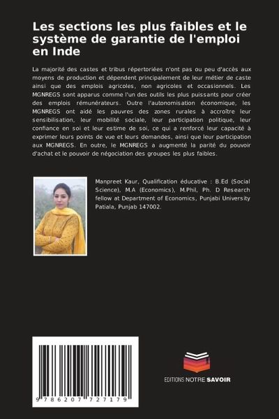 La majorité des castes et tribus répertoriées n'ont pas ou peu d'accès aux moyens de production et dépendent principalement de leur métier de caste ainsi que des emplois agricoles, non agricoles et occasionnels. Les MGNREGS sont apparus comme l'un des outils les plus puissants pour créer des emplois rémunérateurs. Outre l'autonomisation économique, les MGNREGS ont aidé les pauvres des zones rurales à accroître leur sensibilisation, leur mobilité sociale, leur participation politique, leur confiance en soi et leur estime de soi, ce qui a renforcé leur capacité à exprimer leurs points de vue et leurs demandes, ainsi que leur participation aux MGNREGS. En outre, le MGNREGS a augmenté la parité du pouvoir d'achat et le pouvoir de négociation des groupes les plus faibles.